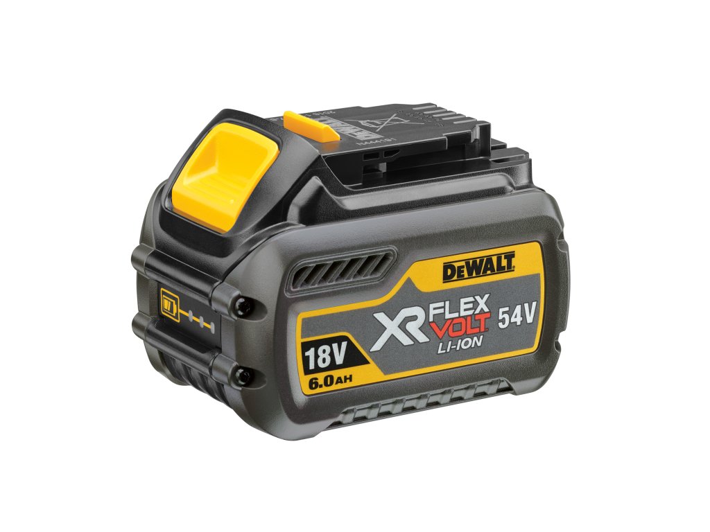 - Špičková technologie baterie DEWALT FLEXVOLT 54/18 V Li-Ion s kapacitou 2-6,0 Ah nabízí prodlouženou provozní dobu a optimalizovaný výkon, což zaručuje rychlé dokončení i těch nejnáročnějších aplikací