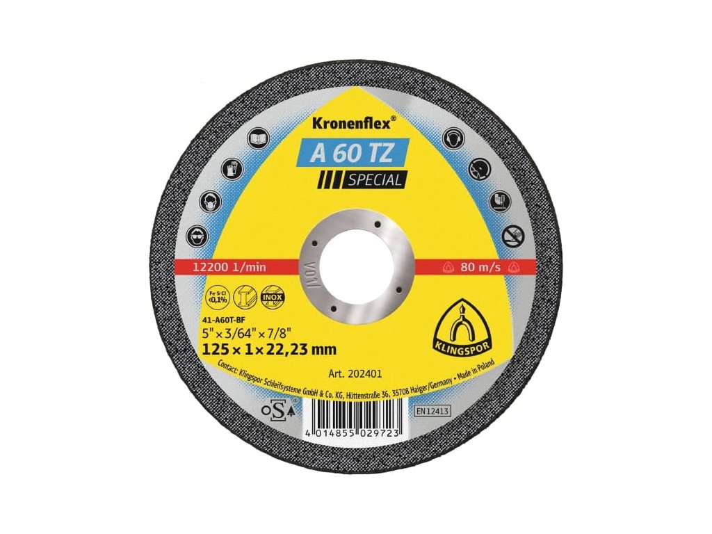 Řezný kotouč Kronenflex A 60 TZ Special je výjimečně tenký a má tloušťku pouhý 1 mm, přesto se vyznačuje vysokou agresivitou a dlouhou životností. Tento vysoce účinný kotouč skutečně zazáří při řezání plechů, tenkých trubek nebo profilů z