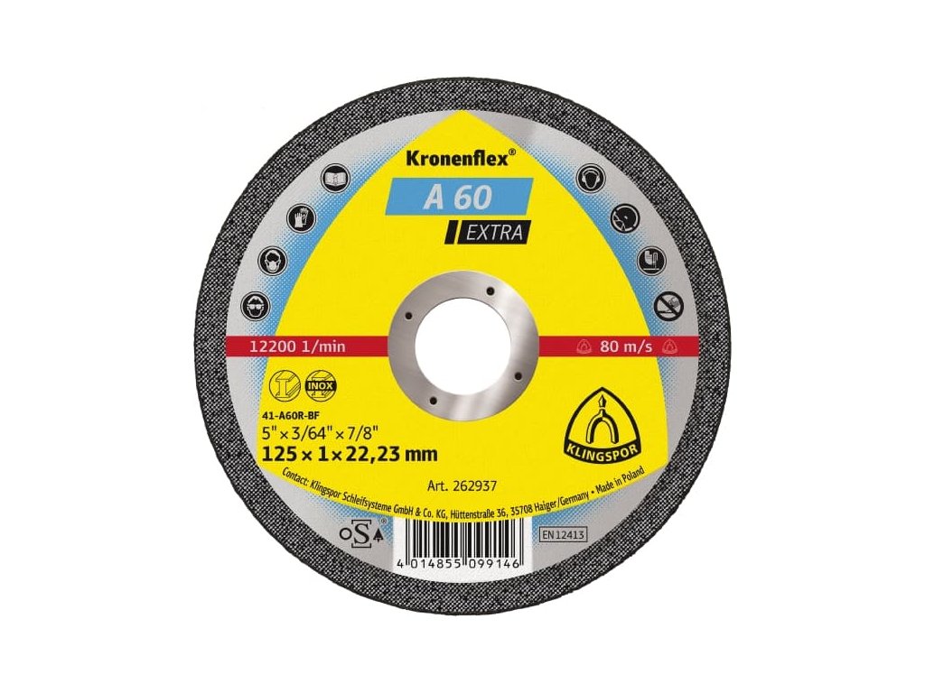 Řezné kotouče Kronenflex A 60 Extra se vyznačují výjimečným poměrem ceny a výkonu. Kotouče jsou určeny pro použití na úhlových bruskách. Používají je především