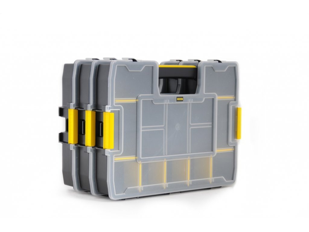 Víko se zámkem zabraňuje přesypání obsahu z jedné přihrádky do druhé